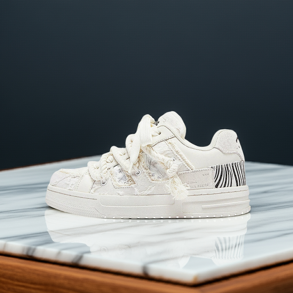 Deconstructed White Chunky Skate Shoes - Urban Style Low Tops